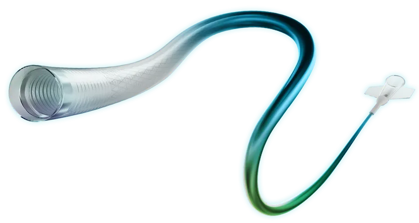 「Esperance」の特長は、カテーテル壁を薄くすることで外径を細径化しながらも大きな内腔が確保されている点です。内腔が大きいことで、吸引口と血栓の接触面が増大し大きな血栓を回収できるため、血流の再開通率の向上が期待されます。また、カテーテル全体の硬度のバランス性にこだわったデザインが、先端部における柔軟な通過性と術者の手元における安定した高いサポート性をうまく両立し、蛇行する脳血管内でも血栓へのスムーズなアプローチを可能にしました。これらの特長をもつ「Esperance」によって、脳血管内治療の成績向上に貢献します。