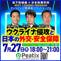 松下政経塾では、日本政策学校と共催で、全国各地でリーダーを目指している方々を対象に、政策テーマについて考える場として「オンライン公開講座」を開講しています。今回のテーマは「外交・安全保障」。「ロシアによるウクライナ侵攻」にスポットを当て、第1部では基調講演を行うとともに、第2部では松下幸之助が塾生たちと「円卓」(ラウンドテーブル)を囲んで、日本と世界の未来について議論したように、オンライン形式でラウンドテーブルを実施します。参加者の皆様から質疑応答も予定していますので、是非ご参加下さい。