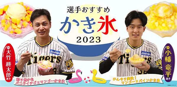 阪神甲子園球場で新たに“選手おすすめメニュー”を発売! 暑い季節にすっきり爽快なデザートといえばアレ(A.R.E.)! ~小幡選手・大竹選手のオリジナルかき氷が新登場~