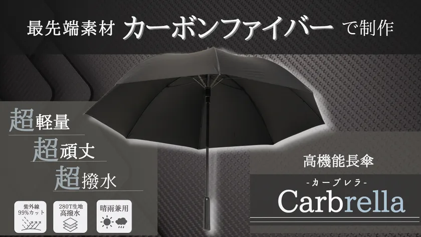 カーボンファイバー製の紳士傘「Carbrella(カーブレラ)」 クラウドファンファンディング「GREEN FUNDING」で 5月12日(金)~6月15日(木)先行販売を実施!