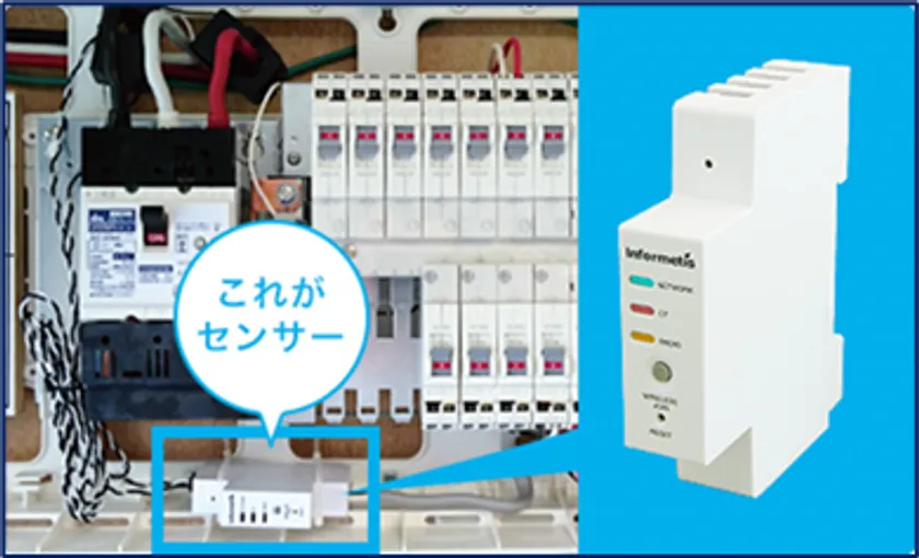 電力センサは分電盤に収納でき、30分程度の簡易工事で設置することが可能。