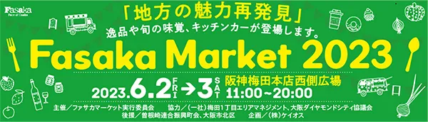 ファサカマーケット実行委員会(事務局:阪急阪神不動産株式会社(本社:大阪市北区、社長:諸冨隆一(※1)))では、阪神梅田本店や大阪駅前ビルなどが集積する「大阪ダイヤモンド地区(梅田1丁目地区)」で、6月2日(金)・3日(土)に、都市型マルシェ「Fasaka Market」を開催します。