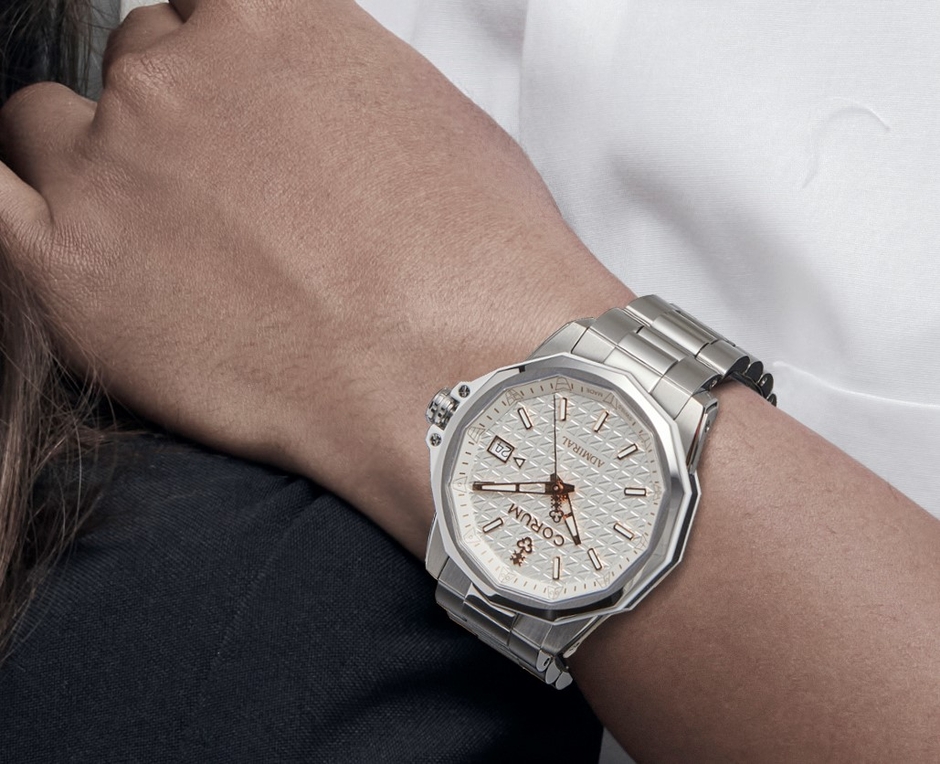 『アドミラル』は、1960 年から続くコルムのロングセラーコレクションです。 世界の外洋航海レースの中で最も激しい伝説的なヨットレース「アドミラルズカップ」をインスピレーションの源とするこのコレクションは、ファッショナブルでありながらエレガントさを兼ね備え、世界中のヨットマンたちの憧れとなりました。メゾンのDNAとして再解釈を繰り返しながら、今日も進化し続けています。