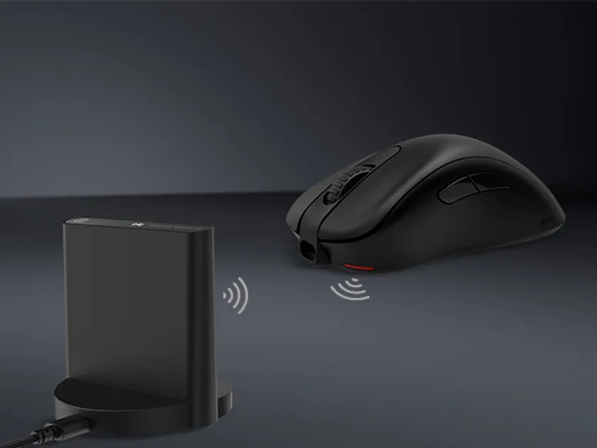 BenQ独自の拡張レシーバー「エンハンストワイヤレスレシーバー」の採用により安定性と柔軟性が向上し、かくつきのないゲームプレイを実現します。また、充電スタンド兼用のエンハンストワイヤレスレシーバーはマウスを置くだけで簡単に充電ができるほか、LEDインジケーターで電池残量が分かりやすい設計となっています。