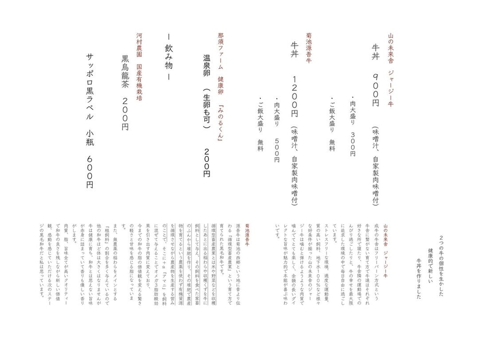 牛丼川口が、健康的で新しい牛丼を提供するために、山の未来舎のジャージー牛と菊池源吾牛の個性を生かしたレシピを開発しました。