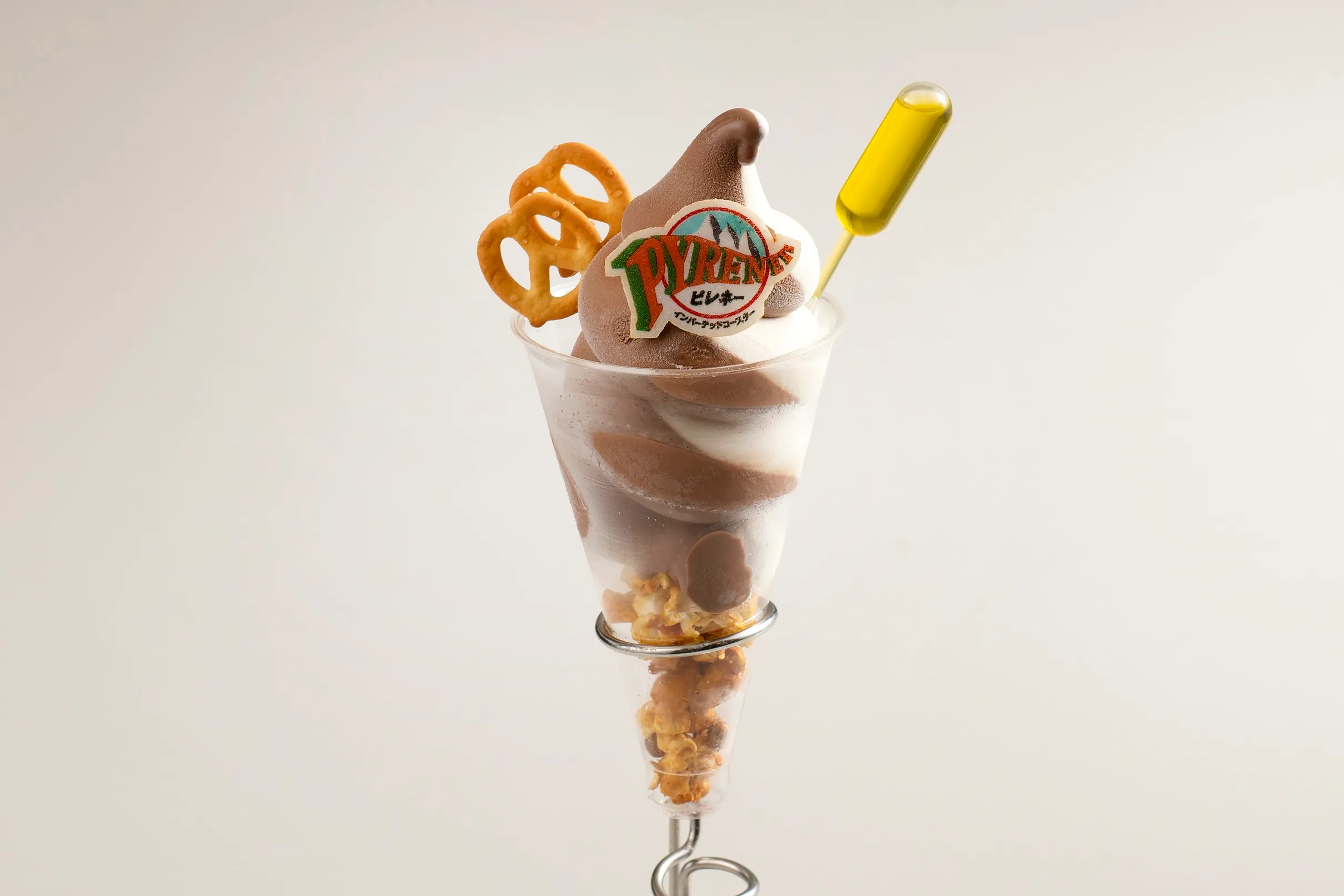 スペインの国境に連なるピレネー山脈をモチーフにしたインバーテッドコースター「ピレネー」では、コースの全長が1,234mであることにかけて、期間中12:34に出発するピレネーにご乗車のお客さまに、オリジナルコースターをプレゼントする企画を実施します。さらに、スモールバル「ペリート」には、「ピレネー」のレールをイメージした「ピレネーパフェ」も登場。オリーブオイルをかけると、すっきりとした香りが広がり、爽やかな味わいをお楽しみいただけます。