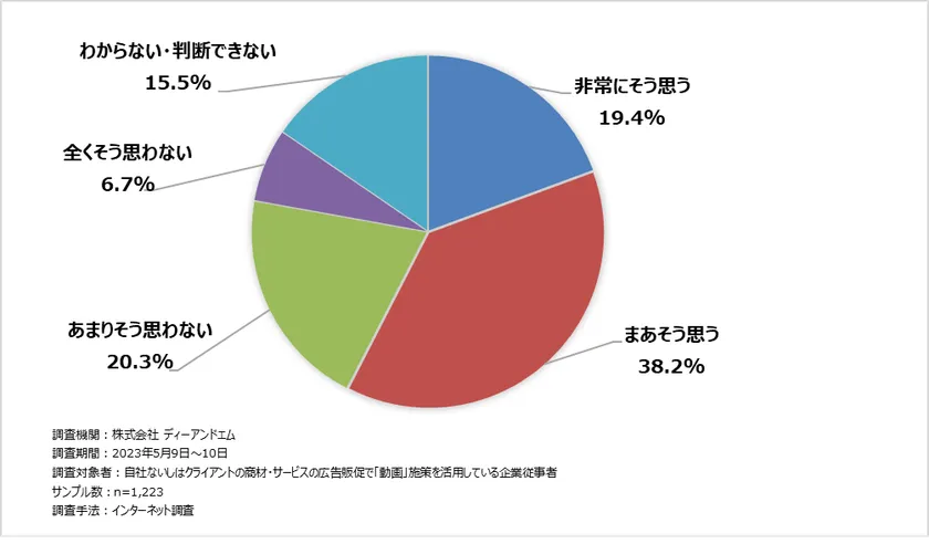一方、「わからない・判断できない」層が15.5%となり、動画活用についての難しさを感じている割合も一定数存在していることがわかります。<図4>