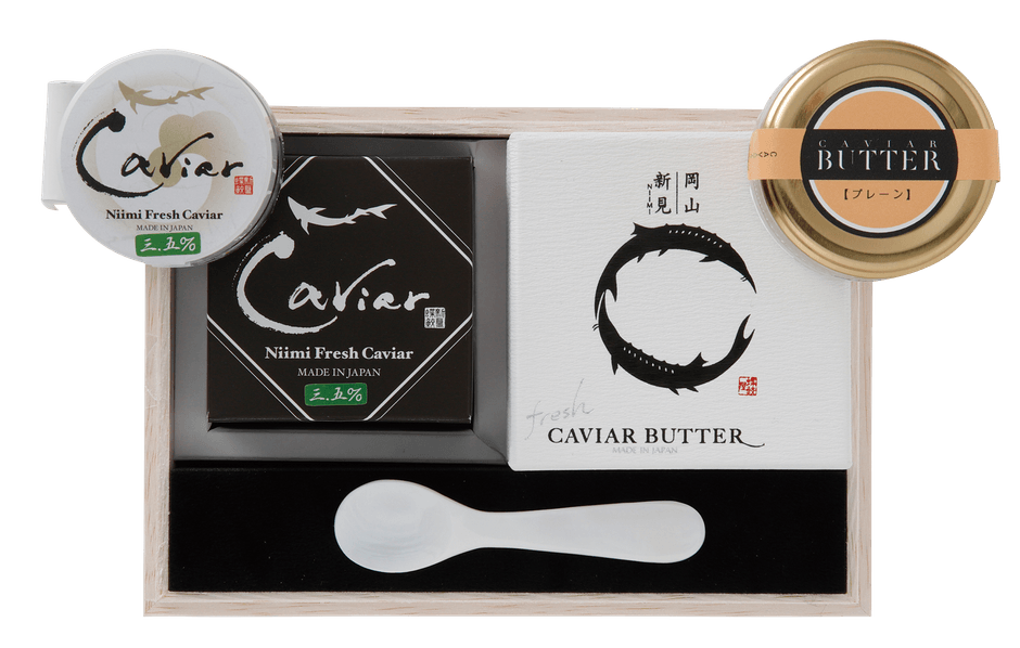 非加熱・低塩分・保存料無添加にこだわった新見フレッシュキャビア。瞬間冷凍で繊細かつ濃厚な旨味を閉じ込めました。厳選した大粒の食感をご堪能いただけます。