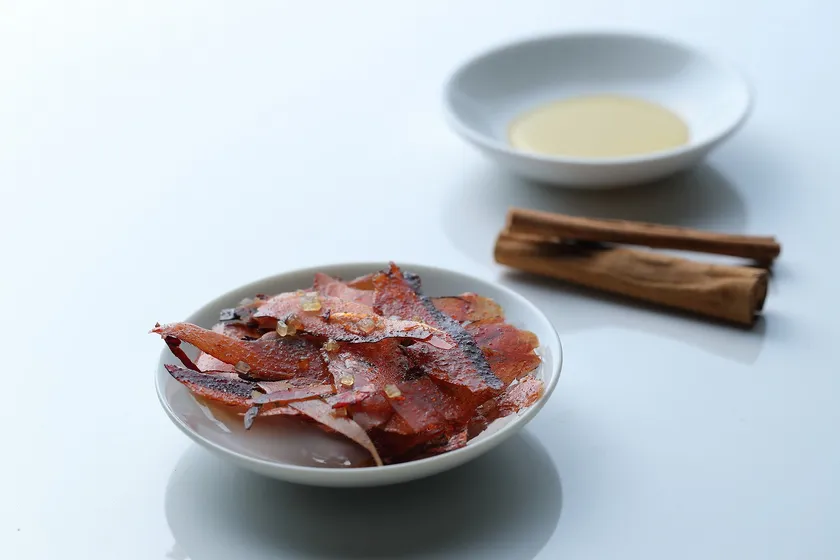 個性的な香りのシナモンをコクのある深い味わいのはちみつが包み込んだ、濃厚で甘い味わいのおつまみです。はちみつの甘さと鰹節チップの旨味の相性も抜群で、ワインに合うおつまみとしてだけでなく、おやつとしても楽しめます。