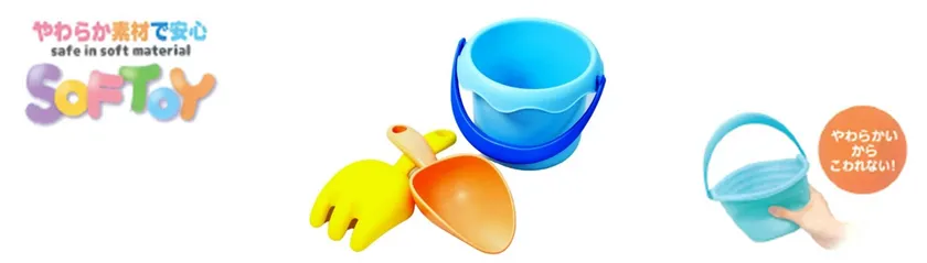 本製品は、お砂場遊びを楽しんでもらうために「砂場での怪我を減らしたい」との思いで開発した「やわらかくて壊れない」がコンセプトのおもちゃです。やわらかい中にも弾力と復元力を持たせ、それぞれの遊びが維持できる厚みや強度を実現しました。やわらかくて壊れにくいことから、保育園・幼稚園のおもちゃとしても人気のシリーズです。