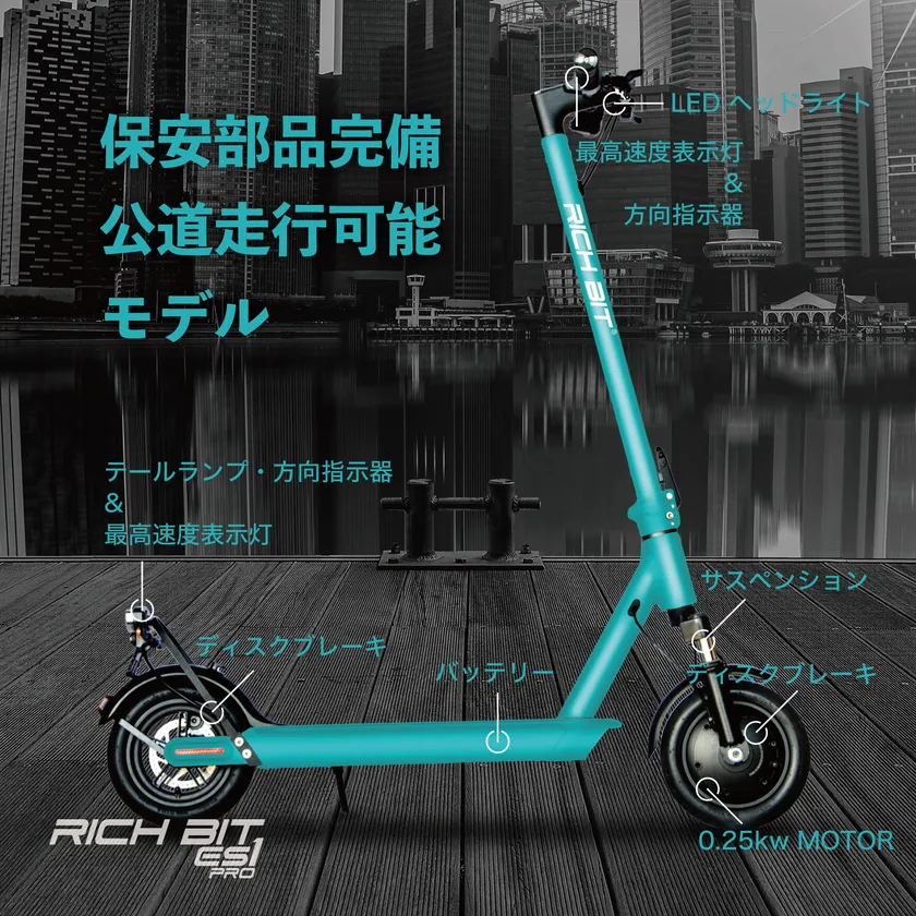 免許不要の改正道路交通法に適合した 日本初となる特定小型原付モデル2機種公開 新型電動キックボード「RICHBIT ES1 Pro」を5月17日リリース