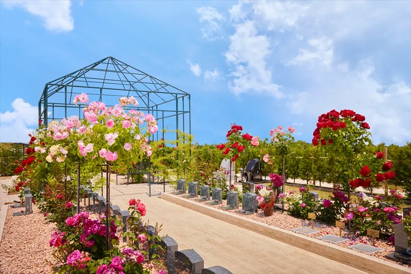 彩り豊かなバラが咲くお庭のような霊園