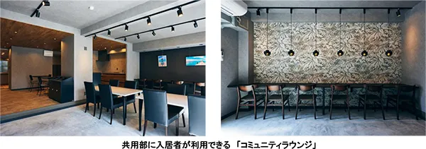 本物件のリノベーションでは、当社がリフォーム事業で培った実績をもとに昨年9月に発足した、法人向けの空間デザインサービスを提供する自社ユニット「阪急阪神スペースデザイン」により、一棟をまるごとリノベーションしました。外装※はもちろんのこと、共用部に入居者が利用できる「コミュニティラウンジ」や「カーシェアリングステーション」を設置したほか、株式会社ビットキーの技術を活用したエントランスへの顔認証システムや専有部のスマートロックの導入によるスマートアクセス化を行い、先進的で快適な住空間としています。