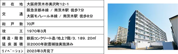 2023年3月、賃貸マンション「マインズ・コム南茨木」誕生 一棟まるごとリノベーションで、 先進的で快適な住空間に生まれ変わりました ~ 建て替える場合と比較して、約8割のCO2排出量の削減を達成 ~
