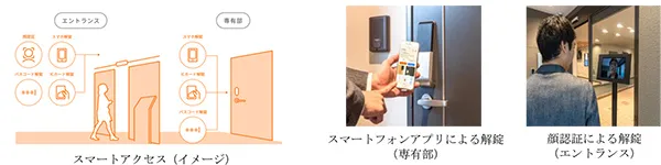 専有部のスマートロックやエントランスへの顔認証システムを導入することで、共用部から専有部までのスマートアクセス化を実現しました。専有部はスマートフォンアプリやICカード、パスコードで解錠も可能で、物理カギを取り出す手間が省けます。また、専用アプリから日時や回数を指定したデジタルキーを発行し、簡単に家族や友人に送付ができます。物理的な合カギの作成が不要なため、カギを複製される心配や、対面で物理カギを渡す手間がなくなります。さらに、入居者に限らず、管理会社や仲介・清掃業者など業務効率化やカギの紛失リスクを低減できます。