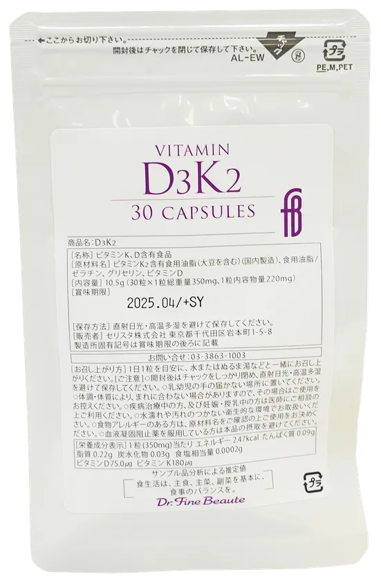 セリスタ株式会社(所在地:東京都千代田区、代表取締役:伊藤 承正)は、医療機関専用サプリメントブランドの「ドクターフィーネボーテ」から、新たなラインアップとして『D3K2(ディースリーケーツー)』を2023年5月16日(火)に発売しました。