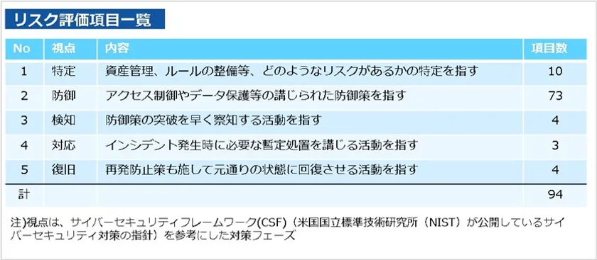 本ガイドラインより選出したリスク評価項目(全94項目)について、対策の実施状況を確認しました。