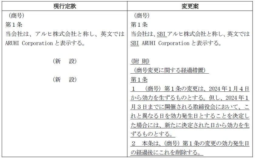 当社の親会社がSBIホールディングス株式会社に異動し、当社がSBIグループの一員となったことを契機として、商号を「アルヒ株式会社」から「SBIアルヒ株式会社」に変更するものです。
