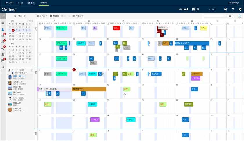 HCLがサポートする全てのバージョンのHCL Dominoで動作する、世界中で数少ないエンタープライズグループカレンダーです。HCL Dominoの会議作成時に、Microsoft Teams、Zoom、Webexの各オンライン会議の同時作成機能など、ユーザーからの要望を新機能として実装し続けています。また、HCL Notes/Domino、HCL VerseとMicrosoft Exchange、Microsoft 365にシームレスに接続して、2つのメッセージ基盤を独自に統合したハイブリッド環境でも利用可能です。クライアントはHCL Notes、HCL Verse、各種ブラウザ、スマートフォンなどでご利用いただけます。