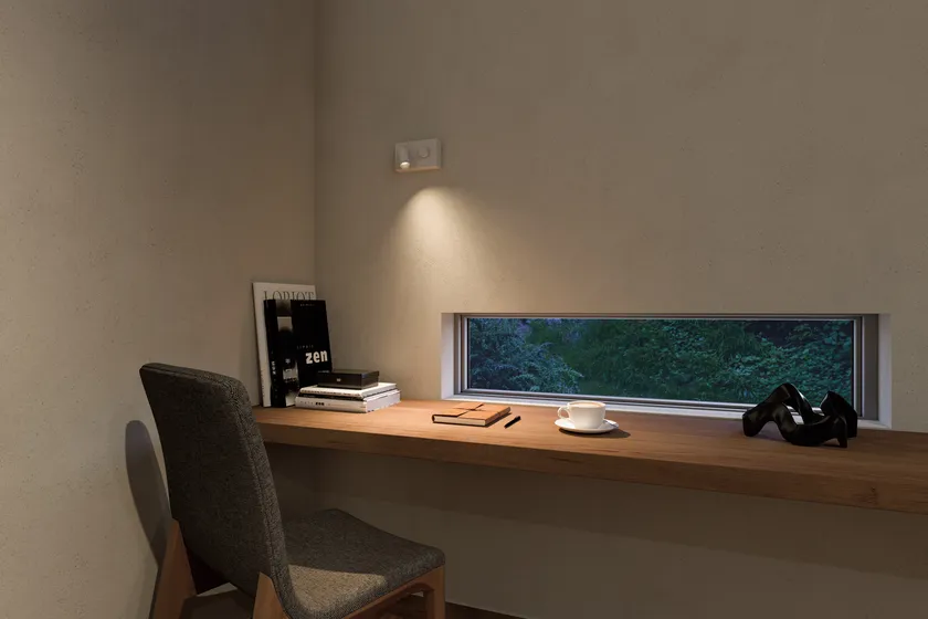 幅広い空間の壁面に溶け込み、美しく調和する埋込型ブラケットライトを18機種拡充。吹き抜けやワークスペース、寝室など様々な空間で提案できるよう、100Wタイプと60Wタイプを展開し、100Wタイプは、配光角度を広角と中角を取り揃えております。また、別売の拡散フードを取り付けて設置すると、より広範囲で照射することが出来る為、目的や用途に合わせて提案することが可能です。色温度は、3色(2700K電球色/3500K温白色/5000K昼白色)、本体カラーを2種類(マットファインホワイト塗装/マットブラック塗装)を取り揃えており、専用調光器を設ければ、調光が可能なため、眩しさを考慮する必要がある空間でもご活用いただけます。