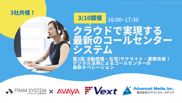 2021年3月10日(水)、3社共催で「第2回クラウドで実現する最新のコールセンターシステム」オンラインセミナーを開催いたします。