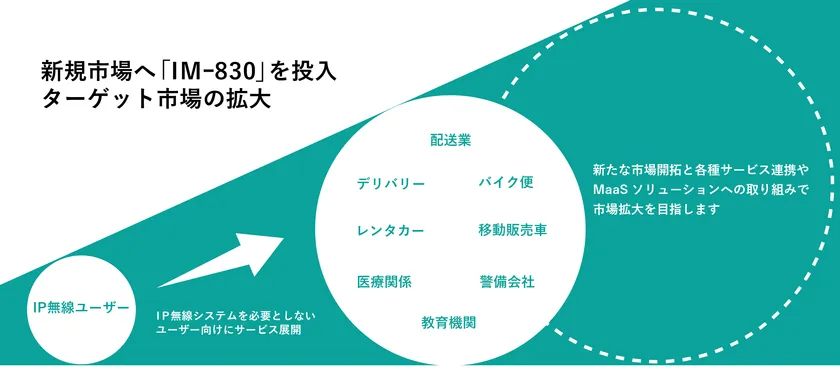 動態管理に特化したデバイスを市場投入することでこれまでのIP無線システムを軸とした市場だけではなく新たな業種・業界の市場に幅広く展開していきます。「モバロケ」も誰もが使い易いデザインと機能構成で大幅リニューアル中であり、年内リリース予定です。