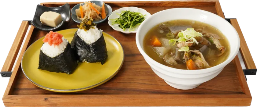 素材や味にこだわったおにぎりと豚汁を、笑顔や温もり、愛情や思いやりなどのカタチではないものを一緒に提供することを心がけています。