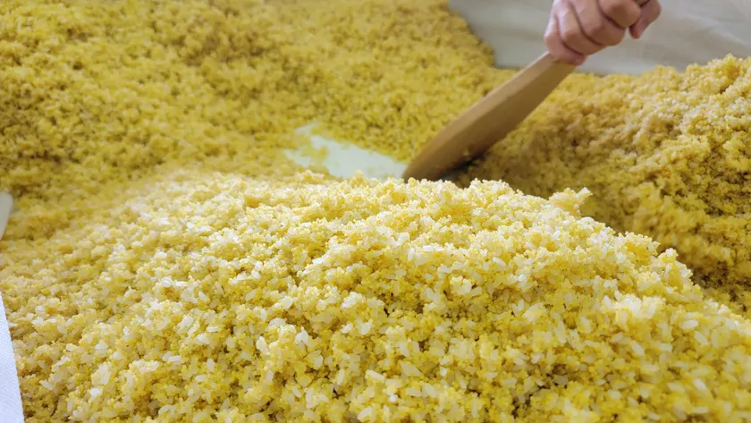 “粟盛”について残っている少ない情報をかき集める中で、粘り気の少ない「うるち」の粟が主に使用されていたことが分かりました。しかし、現代の日本では需要の少なさから、ほぼ生産が行われていない貴重な穀物となっています。本プロジェクトの実現のために全国的な聞き取りを行い岩手県でごく少量生産されていた貴重な粟を手に入れることができました。
