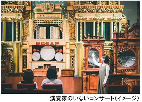 当施設ではアンティーク・オルゴール等の自動演奏楽器をコレクションし、展示・演奏を行っています。演奏家を必要としない自動演奏楽器のコンサートを「演奏家のいないコンサート」と称し、季節ごとに内容を変えて開催しています。