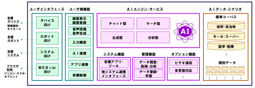デバイスをロボット、AIをチャット型、多言語オプション、役所向けデータを組み合わせて構築