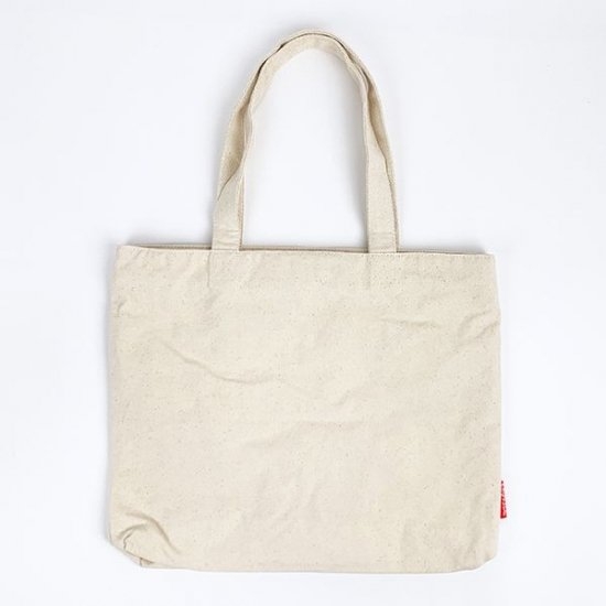 トートバッグはクリームカラーです。生地はしっかりとしていてデイリーユースなバッグです。シンプルなのが使いやすいですよね。
