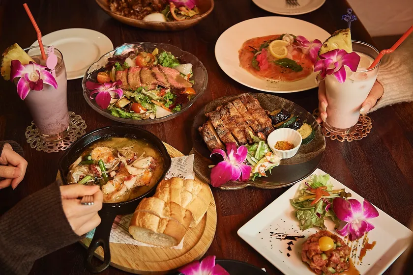 名物のガーリックシュリンプやコブサラダ、ランチで人気のパン工場のクラムチャウダーなど、ここにしかない本格的なリゾートグルメもおすすめで女性に人気のビストロとして地元に愛されるお店を目指しています。