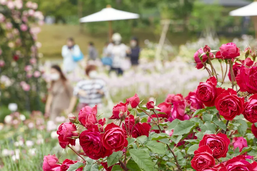 バラは、常陸国風土記に出てくる「イバラ」という植物名が「いばらき」の由来とされていることから、茨城県の県花にもなっており、「いばらきフラワーパーク」では900種ものバラに出会うことができます。
