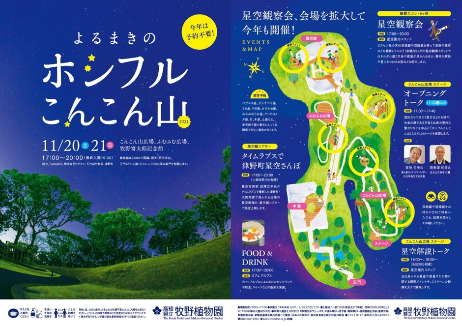 高知県立牧野植物園で11月20日、21日に開催される「よるまきのホシフルこんこん山」に協力