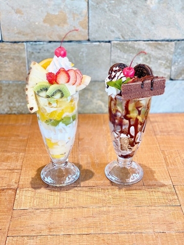 親子で食べても大満足のボリューム「季節のフルーツパフェ」「チョコレートパフェ」