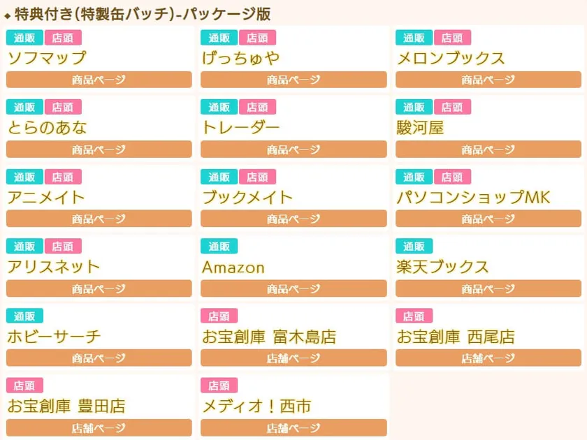 ◆「特典付き - パッケージ版」の取扱販売店一覧