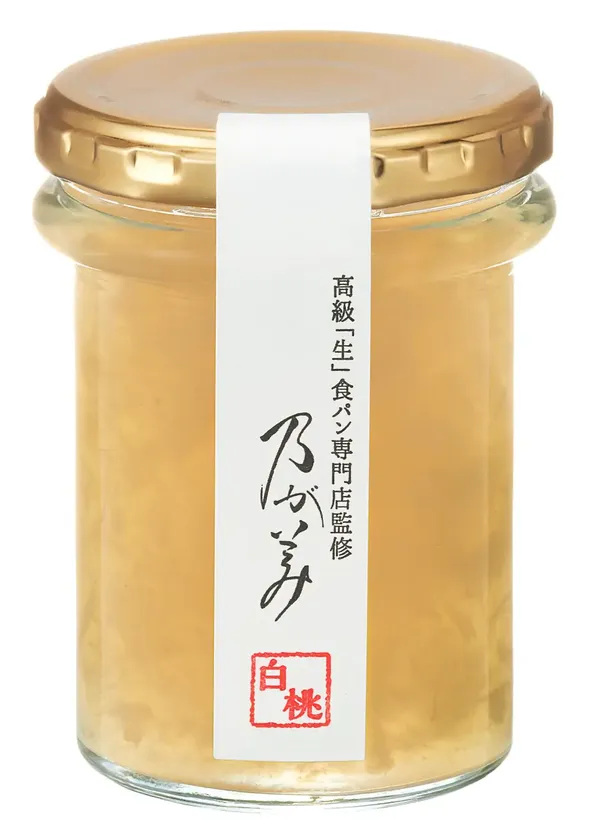「山形県産白桃ジャム」は、山形の農家さんのご協力の下、心を込めて作ってもらった白桃を一番良い状態で瓶に詰め込んだ逸品です。白桃の繊細な香りや色を保てるよう丁寧に煮込み、控えめな甘さに調整することで爽やかな味わいを実現しました。乃が美「生」食パンの本来の美味しさがさらに引き立つ味わいで、白桃のあふれる果肉感を贅沢にお楽しみいただけます。