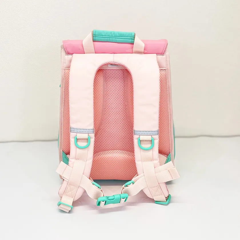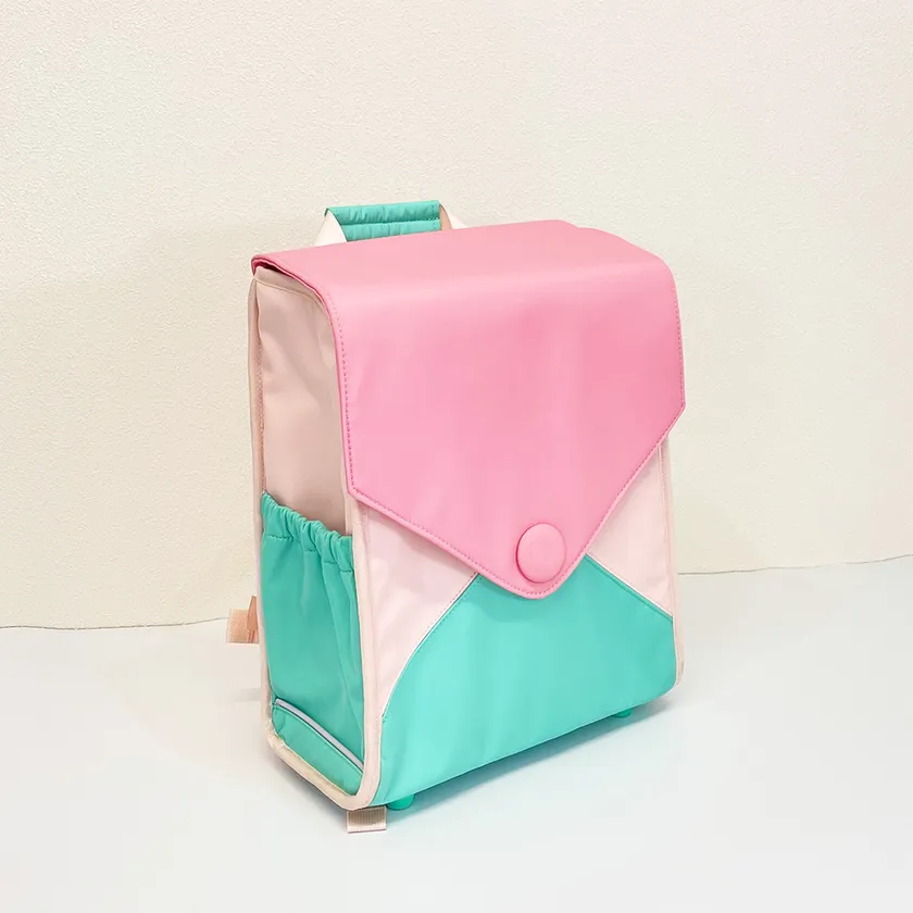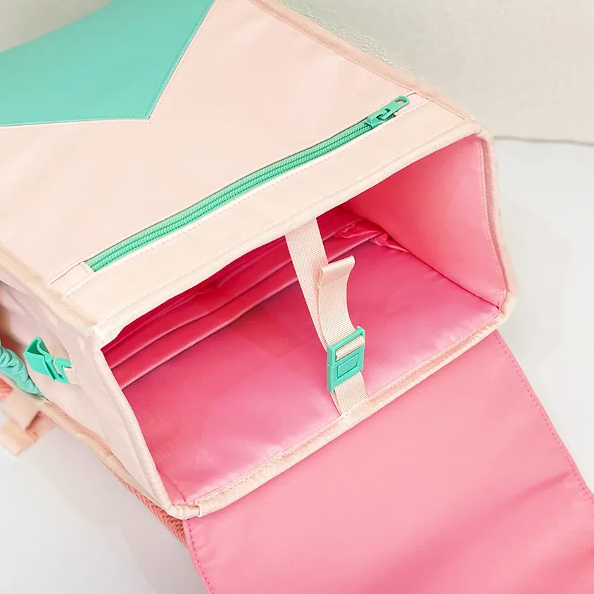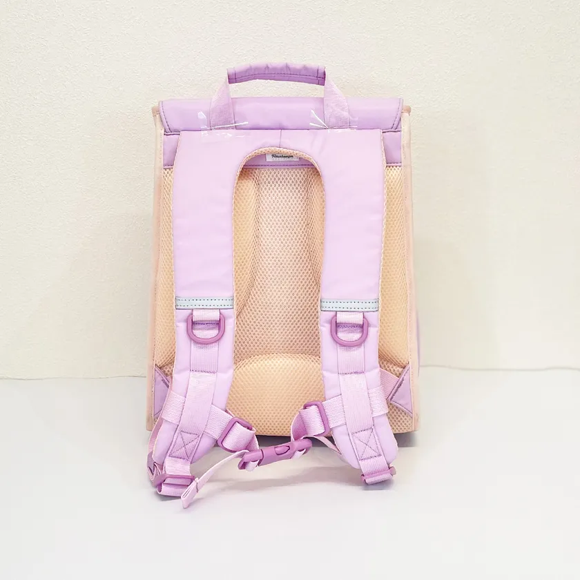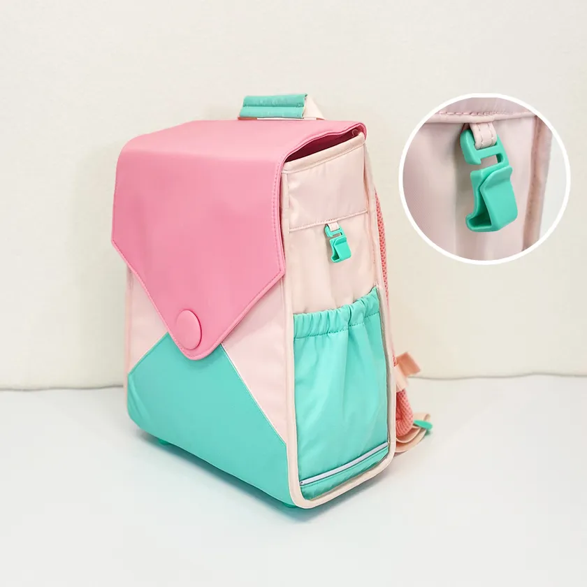 個性的なレター型デザインと、カラフルなカラーを組み合わせる事で、他にはない個性的なデザインである一方、従来のランドセルに近しい箱型フォルムを取り入れ、学校生活に自然と馴染むデザインに仕上げました。