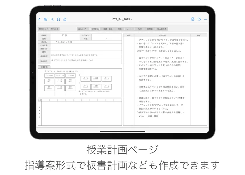 さらにPro版では、スケジュール管理のほか、授業計画や名簿、座席表、児童・生徒個人記録表、校務別スケジュール、会議ノートなどが作成可能です。