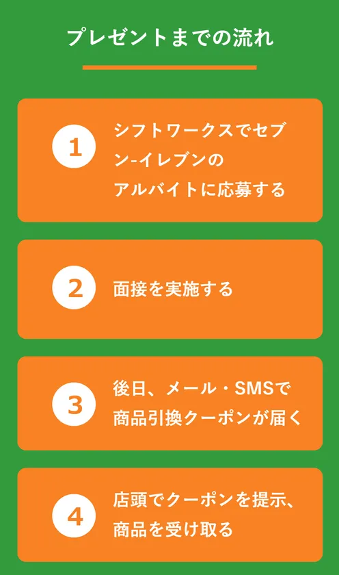 働きたいシフトで仕事を探せる求人サイト「シフトワークス」では、中国・四国・九州地方(沖縄県を除く)のセブン-イレブン店舗に応募した15歳~18歳の応募者に対して、面接実施後に「ハーゲンダッツ ミニカップ」「7プレミアム カフェラテ」と引き換えできるデジタルプレゼント(デジプレ)をお送りするキャンペーンを実施します。
