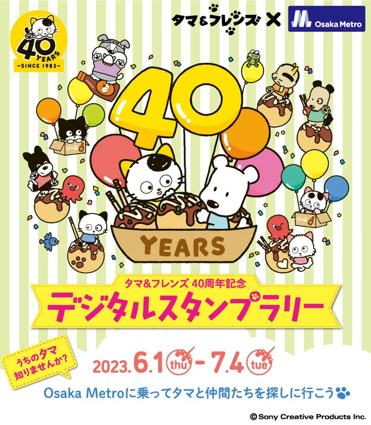 Osaka Metroに乗って「タマ&フレンズ40周年記念デジタルスタンプラリー」をお楽しみください。