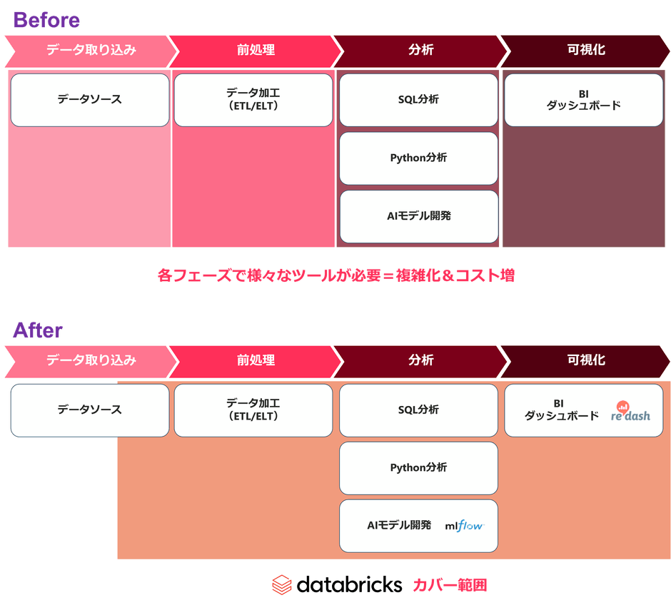 <データ処理の時系列で見たデータブリックスのカバー範囲>