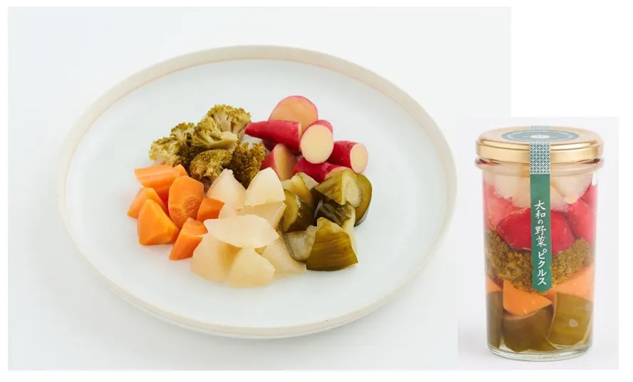 「奈良の野菜を無駄なく食べてもらいたい」「地場野菜を未来に残したい」という想いから、市場に出荷できない規格外野菜を使用したピクルス。