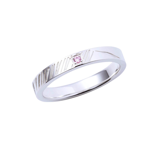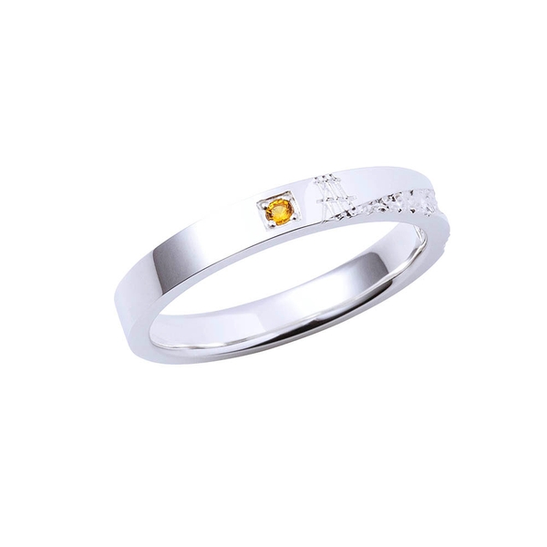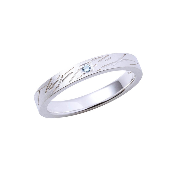 平打ちタイプのリング表面には、先を長く尖らせた鉛筆のシルエットを取り込み、イメージカラーストーンをセット。内側には鉛筆を刻印しました。