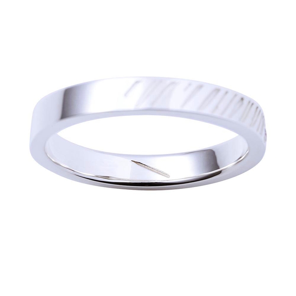 平打ちタイプのリング表面には、ウサギ小屋のフェンスを取り込み、イメージカラーストーンをセット。内側には刷毛を刻印しました。