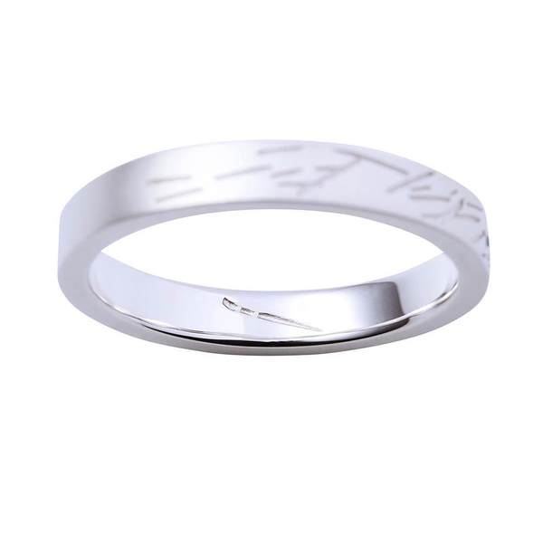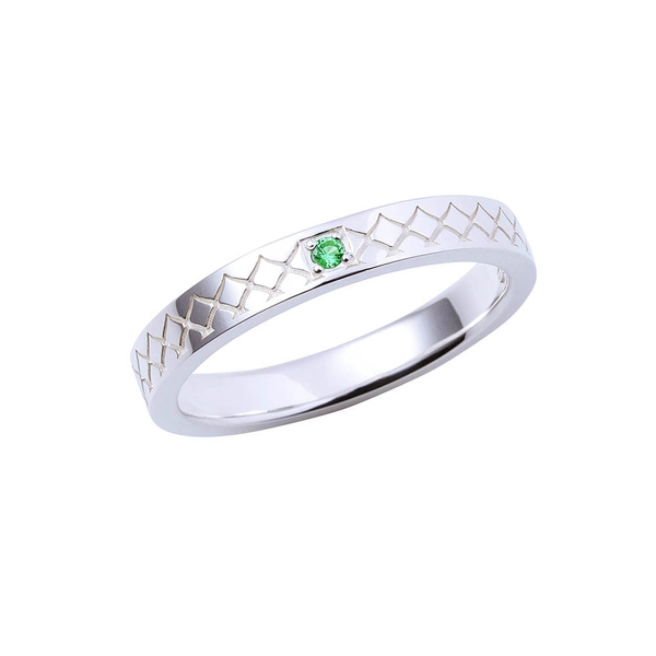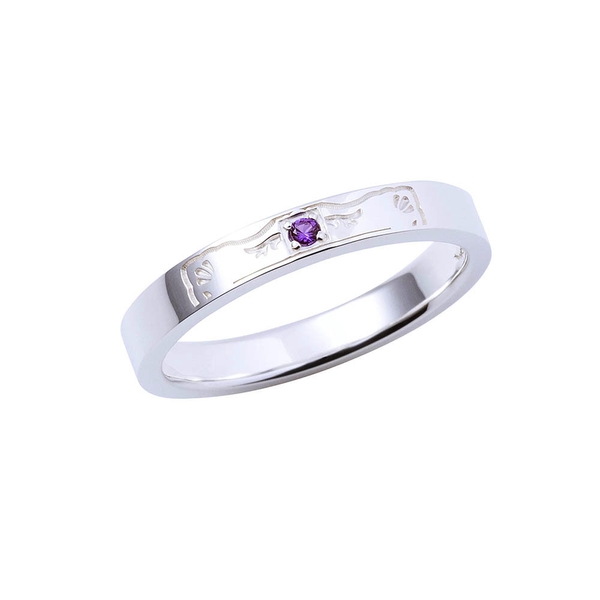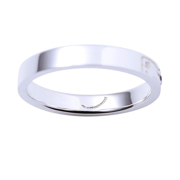 平打ちタイプのリング表面には、絵画の額縁を取り込み、イメージカラーストーンをセット。内側にはトレードマークのおさげを刻印しました。