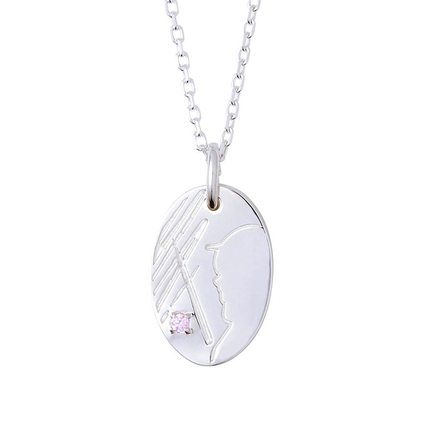 オーバルタイプのプレート表面には、トレードマークのおさげと絵画の額縁を表現し、イメージカラーストーンをセット。裏面には白衣のシルエットと名前を刻印。