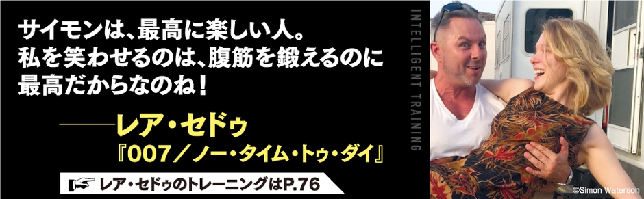 すべての007 シリーズで、私はできるだけたくさんのスタントをこなしたかった。それができたのは、身体づくりに対するサイモンのスマートなアプローチと、トレーニングだけでなくリカバリーと栄養にも注目する彼のやり方があったからだ。サイモンと仕事ができたことを光栄に思う。