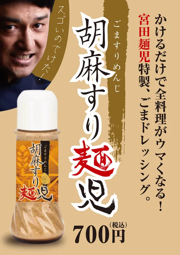 帰ってきた宮田麺児プロデューサーの吉本興業所属シャンプーハットてつじが、これまでは小麦をこよなく愛し、小麦の削り方にまでこだわり、同店のオリジナル麺の開発に携わって参りましたが、今回は小麦ではなく胡麻を削り、どんな料理でもマッチする胡麻ドレッシングを開発しました。