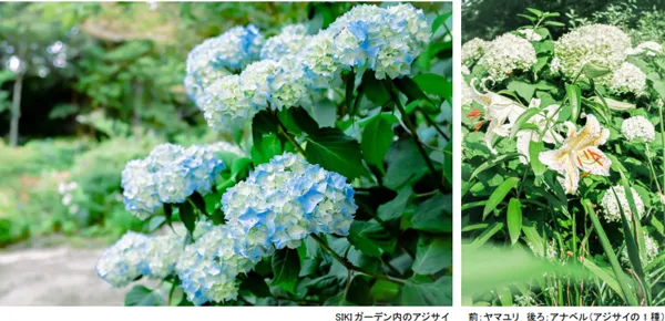 当施設は、六甲山上に位置し、気温が市街地より5度程低い為、アジサイ類は市街地よりも約1か月遅れで見頃を迎えます。六甲山は雨や霧が多く、湿潤とした環境の中で咲く夏の花々は、市街地のものより発色が鮮やかです。SIKIガーデン内では、ヤマアジサイ、ガクアジサイ、セイヨウアジサイ、アメリカアジサイ、ノリウツギなど合わせて20種類以上、350株以上のアジサイと、タケシマユリ、ヤマユリ、シャンデリアリリー、オリエンタルリリーなど、1000株以上のユリが開花します。